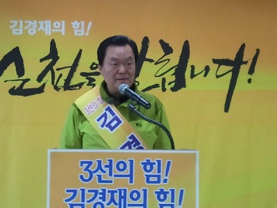 전남 순천에 무소속으로 3선에 도전하는 40년 민주당원 김경재 후보가 6일 기자회견을 통해 순천을 민노당에게 팔아넘긴 민주당 손학규 대표를 강하게 비판했다.