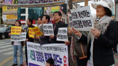 실제로 6일 '북한인권법'제정을 촉구하는 시민단체가 순천을 방문해 “북한의 처참한 인권상황에 침묵하는 민노당을 심판해야 한다”며 연향동 국민은행 4거리에서 민노당 규탄시위를 벌였다.