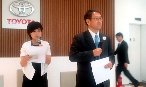 4일 오후 3시 40분경 도요타 자동차 강남 전시장에 나타난 아키오 사장은 다소 굳은 표정이었다. 최근 경영악화로 인한 불편한 심기가 그대로 드러난 듯 했다.