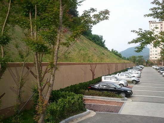 따라서 건물은 도로 반대측 경계로부터 43m 이상 이격되어 있어 아파트 층수는 약 23층까지 건립이 가능하나 현재 15층으로 건립되어 있어 '1개 라인(225세대)를 더 짓기위해 부지경계 단지밖으로 경사면을 밀어냈다' 는 이 기자의 주장은 맞지 않다고 주장했다.