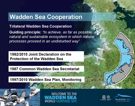 와덴갯벌이 세계자연유산으로 등재되기 전, 독일,네덜란드,덴마크 3국은 공동으로 맺은 각종 협약을 통해 공동사무처를 마련하는 등 수년간에 걸친 연구보고서와 보존 노력을 통해 와덴갯벌을 세계자연유산으로 등재하는 성과를 거두었다.
