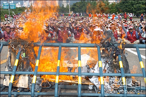 민주노총이 포스코 광양제철소를 상대로 같이 살자며 대대적으로 시위를 벌이겠다는 것이다. 그것도 대놓고 '영업이익의 10%와 잉여이익금 10%를 내놔라' 는 것이다.