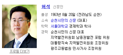아울러 필자는 30년간 시민활동과 노동운동 해왔다는 그의 주장이 사실인지에 대해 정확히 확인할 길이 없다. 필자가 '네이버'에서 허석 프로필을 검색한 결과 본인의 경력사항에 시민운동단체나 노동운동 단체에서 활동했다는 경력은 단 한건도 없고, 오히려 일부 정부기구에 참여한 사실만 노출되어 있기 때문이다.