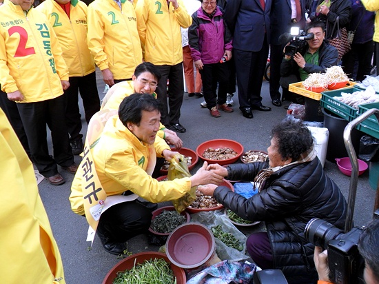 순천 곡성 선거구에 출마한 노관규 후보 지지에 나선 손 고문은 5일 순천 북부시장을 방문해 "노 후보가 시장시절 일자리를 늘리고 기업을 유치해 잘사는 순천을 만들었다"며 치켜세웠다.