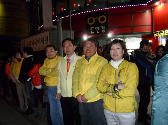그 자리에 모인 노 후보 지지자들은 노 후보 연설마다 "노관규를 국회로" 라는 구호로 화답했다.