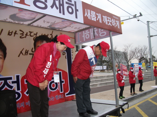 "이왕 될 사람은 정해졌으니, 한 가족 3표중 민주당 후보 2표 찍어주고 나머지 한표는 지역발전을 위해 한나라당도 찍어주자"라는 분위기가 있었다는 게 정 후보 관계자의 설명이다.