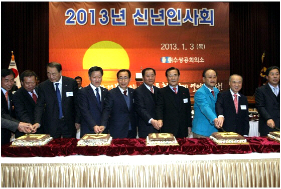 여수상공회의소는 3일 오전 여수 엠블호텔에서 2013년 신년인사회를 가졌다. 이날 인사회에는 박준영 도지사를 비롯, 심장섭 여수상의회장과 김충석 여수시장, 강동석 전 여수세계박람회조직위원장, 주승용ㆍ김성곤 국회의원, 상공인 등 400여명이 참석해 지역경제활성화를 다짐했다.
