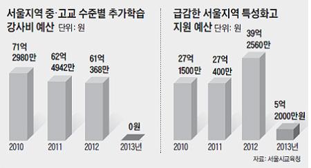 무상 급식·무상 보육 등 교육 복지가 확대되면서 학력 미달 학생과 저소득층 학생을 위한 교육비가 모두 삭감 되었다. 서울시교육청은 2013년 예산에서 '수준별 이동수업 추가학급 강사비'를 삭감 학력 미달자 특별교육이 중단 되었고 가정 형편이 어려워 졸업 후 곧바로 취업을 위한 특성화고 예산 대폭 삭감했으며 서민자녀 방과 후 활동비 삭감 등으로 무상급식의 피해가 부메랑이 되어 서민 자녀 가슴에 꽂히고 있다.