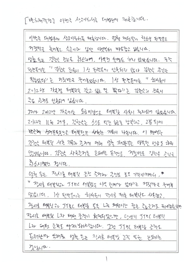 엄철 재판부의 항소심 판결문은 거짓말을 늘어놓는 수준이라 일단 이것부터 바로잡고 있습니다. 엄철 등은 김한수 증인을 취소하며, 아무런 설명도 하지 않았습니다. 정작 판결문에는 “김한수 진술이 1심 판결문에 인용되지 않아 김한수 증인은 필요없다”는 거짓말을 적어놓았습니다. 1심 판결문에는 “최서원이 2012년 가을경 태블릿을 갖고 있는 걸 봤다”는 김한수의 진술이 주요 증거로 인용되어 있습니다.