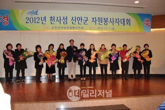 신안군(군수 박우량)은 지난 7일 신안비치호텔에서 어려운 이웃과 지역사회를 위해 봉사하는 자원봉사자들의 노고를 격려하고 자원봉사문화 정착을 위해 『2012년 천사섬 신안군자원봉사자대회』를 개최하였다고 밝혔다.