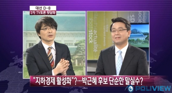 지하경제 활성화 등 박 후보의 실수를 놓고도 평가가 엇갈렸다. 이 소장은 “실언이 반복되면 실언이 아닌 것”이라며 “박 후보가 이해가 부족하고 숙성되지 않았다는 것”이라고 한 반면, 박 사무총장은 “활성화와 양성화는 뜻이 전혀 다르다. 인식의 문제와 표현의 문제는 다른 것이다. 실제 인식한 것이 잘못된 것과 말실수는 전혀 차원이 다른 문제”라며 “박 후보가 방송에 매우 적합한 분은 아니다. 말실수를 가지고 토론을 잘했다, 못했다 평가하기는 어렵다”고 반박했다.