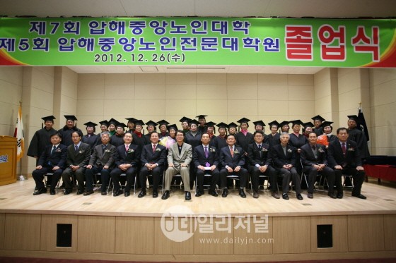 압해중앙노인대학이(학장 신현파) 지난 26일 신안군청 2층 공연장에서 박우량 신안군수, 군 의회 양영모 의장을 비롯 군의원등이 참석한 가운데 제7회 노인대학, 제5회전문대학원 졸업식을 가졌다.