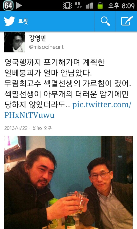 또한 강대표는 다른 트윗에서 "영국행까지 포기해가며 계획한 일베붕괴가 얼마 안남았다. 무림 최고수 섹멸선생의 가르침이 컸다. 섹멸선생이 아무개의 더러운 암기에 당하지 않았더라도"라는 트윗을 남겨, 그간 감추려던 정치성도 드러냈다. 더구나 동양대 진중권까지 개입해 있어, 이들의 정치성은 더 이상 논란의 여지조차 없다.