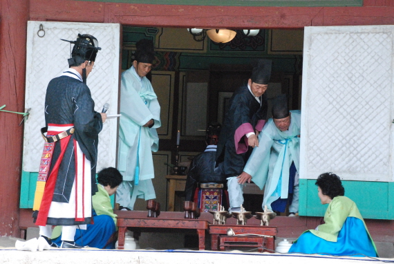 이 날 석전의 봉행은 초헌관이 분향하고 폐백을 올리는 전폐례로 시작되며 다음은 초헌관이 첫 잔을 올리고 대축이 축문을 읽는 초헌례, 아헌관이 두 번째 잔을 올리는 아헌례, 종헌관이 세 번째 잔을 올리는 종헌례, 분헌관이 종향위에 분향을 하고 잔을 올리는 분헌례 등 헌작례가 차례로 진행됐다.