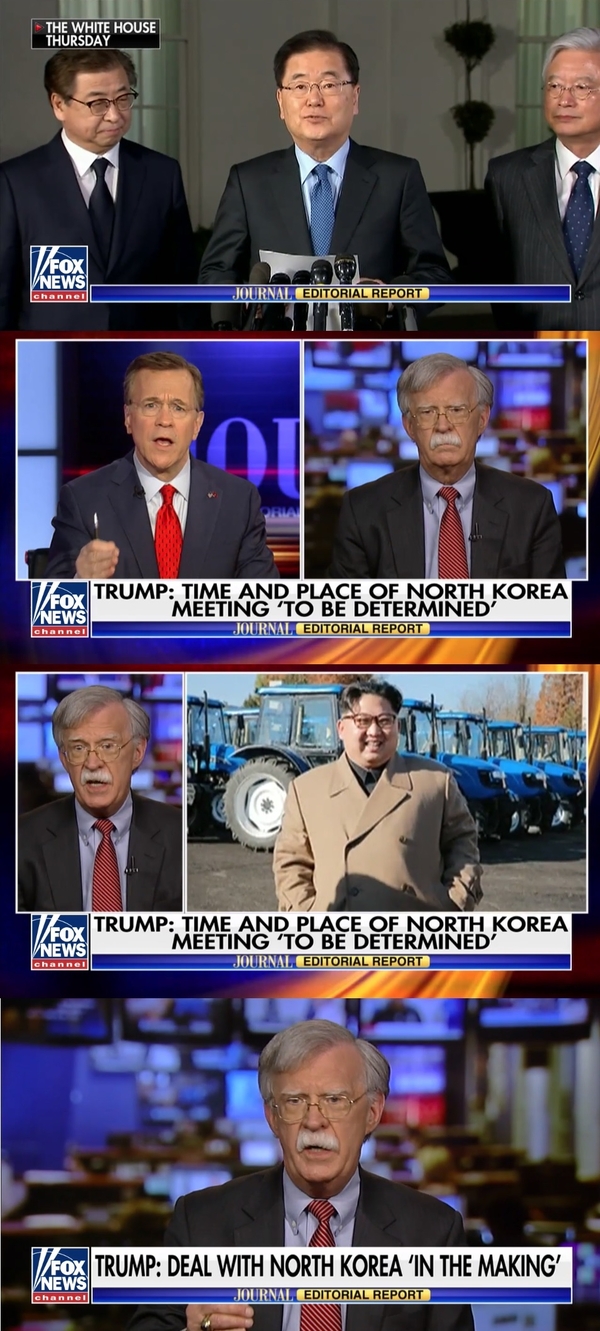 존 볼턴은 “김정은은 트럼프 대통령의 기습적인 미-북 정상회담 수락의 의미가 무엇인지 과거 북한의 협상 전술 교범을 뒤적거리고 있을 것이다(Throwing North Korea’s playbook Disarray, Where is the tab which explains if trumps accepts the meeting?)”라며 신랄한 분석을 내놨다.