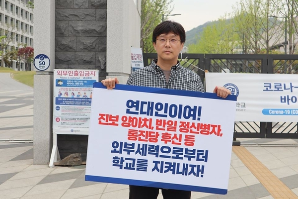 [포토] “연대인은 좌익 세력으로부터 류석춘 보호하라” 제11차 연세대 앞 1인시위