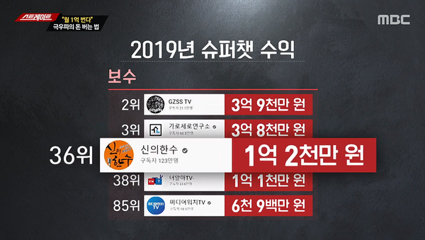 7일 저녁 8시25분에 방송된 MBC ‘스트레이트’ 90회에서는 보수 유투버들의 슈퍼챗 돈벌이를 다루었다. 막말과 사기에 가까운 음모론으로 슈퍼챗을 끌어모은다는 내용이다.