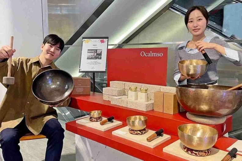 불교문화에서 유래한 싱잉볼은 깊은 울림을 통해 심신의 이완을 돕는 명상 보조도구다. 갤러리아는 최근 3040세대를 중심으로 ‘마음건강’을 중시하는 트렌드가 확산하며 명상에 대한 관심이 높아져 오감소 팝업을 기획했다.