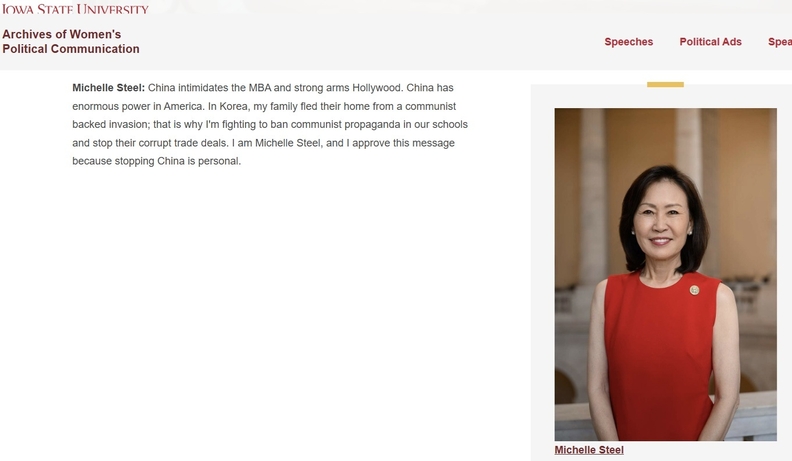 “중국은 MBA 출신들을 위협하고 할리우드를 압박한다. 중국은 미국에서 막대한 영향력을 행사하고 있다. 한국에서 제 가족들은 공산주의자들의 지원을 받는 세력의 침략을 피해 고향을 떠나왔다. 그렇기에 저는 학교에서 공산당 선전을 금지하고 중국의 부패한 거래를 막기 위해 싸우고 있다.