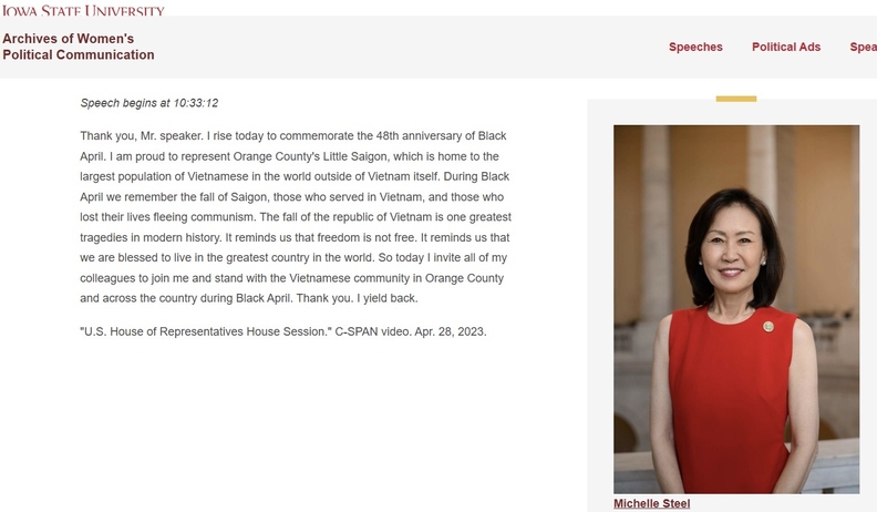 “우리는 ‘검은 4월’에는 사이공의 함락과 베트남전에 참전했던 분들 그리고 공산주의를 피해 도망치다 목숨을 잃은 분들을 기억한다. 베트남 공화국(남베트남)의 몰락은 현대사에서 가장 큰 비극 중 하나다. 이는 자유가 거저 얻어지는 것이 아님을, 그리고 우리가 세계에서 가장 위대한 나라에 살고 있다는 것이 얼마나 큰 축복인지를 일깨워준다.