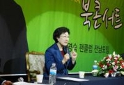 (데일리안광주전라=박종덕 본부장)민주통합당 대표 경선에 출마한 한명숙 전 국무총리는 지난 21일 순천을 방문해 "김대중.노무현 정신을 이어받아 모두가 하나돼 2012년에는 악의편이 아니라 정의의 편에 서서 정권교체를 이뤄내 김대중.노무현 정신을 구현하고 행복시대를 열기위해 대표에 나서려 한다"고 밝혔다. 한 전 총리는 이날 오후 전남 순천 동부웨딩홀에서 열린 북콘서트에서 "당대표 출마를 선언한 것은 무슨 높은자리에 올라 권력을 갖겠다는 것이 아니라, 민주정부 10년 성과를 되찾아야 하고 내년 총선과 대선승리를 위해 정권교체를 위해 필요하다면 나를 도구로 써달라는 의미에서 대표에 출마하게 됐다"고 대표출마의 의미를 그날 행사장을 찾은 인사들에게 밝혔다. 한명숙씨가 그날 행사장에서 한 얘기들을 들어보면 김대중 대통령과 노무현 대통령이 죽기 전에 본인에게 했던 시시콜콜한 얘기까지 섞어가며 김대중-노무현을 이용한 홍보전을 하고 있다는 것을 느낄 수 있다. 이런 얘기를 듣고 있자면, 그 옛날 시골촌에 있다가 출향한 인사가 다시 그 촌에 내려와 사랑방 화롯불 근처에 둘러앉은 시골촌부들 앞에서 서울서 겪은 여러 경험담을 그럴싸하게 꾸며가며 들려주던 얘기가 생각난다. "내