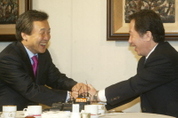 대선불출마를 선언한 김근태(金槿泰) 전 열린우리당 의장과 손학규(孫鶴圭) 전 경기지사, 천정배(千正培) 의원이 14일 연쇄 회동을 갖고 범여권 대통합을 위해 함께 노력하자는 데 의기투합했다. 김 전 의장과 손 전 지사는 이날 오전 여의도 한 호텔에서 조찬회동을 갖고 "과거회귀적, 냉전적 수구세력의 집권을 막고 평화개혁세력의 대동단결을 위해 힘을 모으기로 합의했다"고 우상호 의원이 브리핑을 통해 전했다. 백의종군 선언 이후 `대통합 전도사'로 나선 김 전 의장은 이날 경기고-서울대 동창이자 민주화운동의 동지인 손 전 지사를 만나 각별한 정을 나누면서 "후보자 연석회의와 통합정당 창당에 진력하는 게 지지자를 설득하는 가장 유력한 방법"이라며 "그 한복판에 손학규가 있다는 걸 잊지 말라"고 조속한 대통합 합류를 종용했다. 손 전 지사는 "`김근태' 하면 최고의 도덕성 아니냐. 살신성인의 정신으로 과거회귀 냉전세력의 집권을 막고 평화적이고 선진적인 나라 건설에 큰 보탬이 돼달라"며 "김 전 의장이 `오랜 벗 학규'라고 불러주는 데 내겐 큰 자랑이고 자부심을 느낀다"고 치켜세웠다. 이에 김 전 의장은 "작은 결단에 대해 용기를 줘서 고맙다"며 "다 합치는 게 국민의