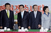 (서울=연합뉴스) 맹찬형 기자 = 범여권 대선주자 6인은 4일 오전 국회 귀빈식당에서 첫 연석회의를 갖고 국민경선과 대통합신당 창당에 참여하고 국민경선 준비작업을 초.재선 의원들이 주도하는 `국민경선추진협의회'(국경추)에서 진행토록 한다는 데 합의했다. 범여주자들은 회동 직후 발표한 합의문을 통해 "민주평화개혁 세력의 대선 승리를 위해 하나의 정당에서 국민경선으로 단일후보를 선출하는 데 동의한다"며 "민주.평화.개혁의 가치를 공유하는 모든 정치세력이 함께 하는 대통합신당 창당에 참여한다"고 밝혔다. 이들은 또 "국민경선을 위한 규칙과 제반 준비사업은 대통합신당 창당 이전까지 국민경선에 참여를 희망하는 예비후보간 합의를 기초로 국경추가 중심이 돼서 진행한다"는 데 합의했다. 김근태(金槿泰) 전 의장의 초청 형식으로 열린 연석회의에는 손학규(孫鶴圭) 전 경기지사, 정동영(鄭東泳) 전 열린우리당 의장, 이해찬(李海瓚) 한명숙(韓明淑) 전 총리, 김혁규(金爀珪) 천정배(千正培) 의원 등이 참석했고, 김병상 신부, 박형규 목사 등 진보성향 종교계 인사들이 배석했다. mangels@yna.co.kr(끝)