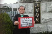 시민단체 활빈단 홍정식 대표가 12일 서울종로구 재동 헌법재판소 앞에서 출근 승용차 안 박한철 헌재소장 등 헌법재판관들 대상으로 통진당 즉각 해산 심판을 요구하는 국민의소리 전달 시위를 벌였다