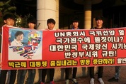 시민단체 활빈단은 20일 오후 6시 전남 순천 에코그라드 호텔 앞 조례사거리에서 미국 현지 반정부단체 교포 규탄시위를 벌였다.10여명의 순천·광양 지역 활빈단 회원들은 이날 미국 현지 반정부단체 교포들이 뉴욕 UN본부 방문을 앞둔 박근혜 대통령을 겨냥한 퇴진 시위를 갖기 위해 뉴욕으로 집결한다는 소식을 접하고 이같은 행사를 가졌다.장찬수 회원은 성명서를 통해 “미국UN총회 연설을 위해 미국 순방에 나선 박근혜 대통령에 대해 미국내 반정부시위대가 세월호 특검법을 빌미로 일본 아베 총리 등 UN참석 해외정상, 각국 외교장관, 유엔 주재대사 등 외교관들 앞에서 국제 망신주려는 뉴욕현지의 국위손상 매국 망동 행동에 우려를 표한다”고 밝혔다. 또한 “유모차를 앞세운 ‘미시 USA’ 회원들로 이루어진 ‘세월호를 기억하는 사람들’, ‘한반도 평화를 위한 미주 시민 네트워크’ 등 미국 각지의 원정시위대가 뉴욕 UN본부앞에 대거 집결해 자국 국가원수 퇴진 요구 시위로 나라망신을 떠는 행위를 도저히 방관할 수 없다”고 주장했다. 특히 “내나라 대통령이 먼길 오는데 환영은 고사하고 소금뿌리는 망동에 온 국민이 분노한다”면서 “광견(狂犬)같은 매국노 집단형 시위 대신 유엔총회에