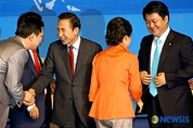 “이 열기 갖고 얼마 남지 않은 시간 박근혜 후보 위해 모든 힘 쏟자”한나라당 박근혜 대선 경선후보가 12일 서울 송파구 올림픽공원 역도경기장에서 서울지역 선대위 발대식을 겸한 당원간담회를 진행한 가운데 이 자리에 1만여명이 운집해 뜨거운 열기를 뿜어냈다. 경기장 내부는 빈 곳을 찾아볼 수 없을 정도로 빽빽하게 사람들이 들어찼으며, 이에 고무된 박 후보는 마이크를 잡고 ‘젊은 그대’를 열창하며 당원들과 함께 호흡했다. 서청원 상임고문과 홍사덕·안병훈 공동선대위원장, 김무성 조직총괄본부장 등 선거대책위원회가 총출동, 연신 서울시 당원들에게 박 후보에 대한 지지를 호소했으며 이에 박 후보도 어느 때보다 상기된 표정으로 당원들의 환호에 답해 “이대로만 가면 경선까지 정말 문제없다”는 얘기들이 쏟아져 나오는 등 발대식은 성황리에 진행됐다. 이 자리에서 홍 위원장은 박 후보의 신념이 묻어나는 최근 박 후보와의 대화 한 토막을 공개했다. 홍 위원장은 “‘대통령이 된다면 정부에 어떤 이름을 붙이겠느냐’고 물었더니 박 후보가 한참동안 망설이다가 ‘내가 이름을 붙이기보다 정부가 끝날 무렵, 아니 훨씬 전에 국민들이 화합정부라고 불러주면 정말로 고맙겠다’고 하더라”며 “박 후