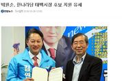 최근 서울시장 후보 여론조사 1위를 달리는 박원순 후보의 정체성이 향후 이슈가 될 전망이다. 좌파시민운동가 기준으로는 한나라당과의 교류가 너무 잦다는 것이다. 박원순 후보는 지난 지자체 선거에서 김연식 한나라당 태백시장 후보를 지원한 바 있다. 그는 “지역사회가 발전해야 대한민국도 발전한다”며 “지역사회 발전은 특정정당 후보가 아닌 좋은 후보가 만들어 낸다”고 당시 태백 방문 이유를 설명했다. 또 박 상임이사는 “김 후보와 길은 서로 달라도 지역사회를 위해, 국가를 위해 노력한 결과는 같을 것”이라며 “10년간 기자 경험과 도의원으로 도정을 운용한 젊은 김 후보가 정치만 늘 했던 사람보다 지역사회 발전을 위해 많이 고민할 것으로 생각한다”고 말했다. 특히 김연식 후보가 “(나는) 합리적 진보주의자이며 진보는 앞서 나간다는 것이지 색깔이 아니”라고 밝히자 박원순 상임이사가 “김 후보와 비전이 같다”고 화답했다고 시티신문이 보도했다. 이어 박 상임이사는 “김 후보가 시장이 되면 외로울 것”이라며 “태백을 발전시키고 새로운 지역사회를 만드는데 서로 협력하고 노력하자”고 제안했다.친노좌파 네티즌들 “차라리 한나라당 소속으로 출마하라”이에 친노좌파 성향 인터넷사이트에