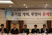 자유경제원(원장 전원책)이 4일 오후 2시 한국프레스센터에서 라는 제목으로 정부가 추진 중인 공기업 개혁의 문제점을 파악하고 대안을 제시하기 위한 세미나를 개최했다.첫 발제자로 나선 박동운 단국대 경제학과 명예교수는 '공기업 개혁, 민영화가 대안이다' 제하의 발표에서 500조에 육박하는 공기업 부채에 대해 "정부 재정통계에서 누락된 공기업 부채는 재정건전성 악화의 시한폭탄이 될 것이며 민영화 담론을 실종시킨 것은 박근혜 정부의 큰 실수"라고 지적하면서 "공기업을 제외한 잘못된 재정통계 때문에 이른바 작은 정부 착시효과가 나타나는데, 이러한 착시 효과가 재정적자를 부추겨 국가채무를 공룡으로 만들었다"고 비판했다.이어 박 교수는 "영국 마가렛 대처 총리가 추진한 공기업 민영화 정책이 롤 모델이 되어야 한다"며 ▲낙하산 방지법의 법제화 ▲부채 해결에 부진한 공공기관장 해임 ▲공공요금 현실화 목표율 설정 ▲경영진 및 노조 스스로의 자기혁신 ▲공청회를 통한 민영화 지지도 확보 등을 대안으로 제시했다.두 번째 발제자로 나선 김종석 홍익대 경영대학장 또한 '민영화의 논리와 원리'라는 제목으로 기업의 완전한 재정 독립성 보장과 정부 지원 가능성의 배제를 주장했다. 김 교수
