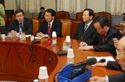 한나라당이 2월 임시국회 회기 내에 사학법을 재개정하기 위해 강력 한 `드라이브'를 걸고 나선 모양새다. 열린우리당 의원들의 집단탈당으로 최근 원내 제1당이 된 `위상'과 여권의 응집력이 이완된 틈을 십분 활용, 장외투쟁까지 벌이며 1년 여 이상 심혈을 기울여 온 사학법 재개정을 반드시 관철하겠다는 각오를 다지고 있는 것. 여기에는 사학법 재개정에 대한 여론이 그다지 나쁘지 않다는 판단 속에 전통적 지지층에 대한 확실한 `성원'을 통해 교계.학계의 지지기반을 확실하게 다지겠다는 포석이 담겨 있는 것으로 보인다. 한나라당은 일찌감치 사학법 문제와 국회운영을 연계하겠다는 방침을 천명한 데 이어 소속 의원 집단 삭발, 여야 장로의원 모임 등을 통해 다각도의 대여(對與) 압박작전을 구사하고 있다. 원내부대표단 소속 김충환(金忠環) 신상진(申相珍) 이군현(李君賢) 의원 3인은 26일 오전 국회 로텐더홀에서 삭발을 했다. 당의 사학법 재개정 관철의지를 알리기 위한 극단 처방으로, 의원들이 종교.사학 단체들의 삭발 행렬에 동참한 것은 이번이 처음이다. 이들은 눈을 감고 비장한 표정으로 삭발을 한 뒤 "정치권도 사학법 재개정을 위해 많은 노력을 하고 있음에도 밖에서 볼 때