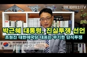 변희재 미디어워치 대표고문이 “박근혜 대통령은 애국우파에게 계속 메시지를 보내야 한다”고 말했다. 변희재 미디어워치 대표고문은 16일 시사폭격 231회에 출연해 박근혜 대통령의 입장문 전문을 해설하며 이같이 전했다. 앞서 박 대통령은 이날 열린 재판에서 발언 기회를 얻어 "법치의 이름을 빌린 정치 보복"이라며 사실상 재판을 거부하겠다는 뜻을 밝혔다. 변희재 대표는 이와 관련, “‘사형을 때리든 마음대로 해라, 난 재판 안 받겠다’는 자포자기가 아니라 옥중에서 진실을 알리는 투쟁을 하겠다는 의미다”며 “이는 우리같이 태극기를 든 국민들을 염두한 얘기라고 본다”고 말했다. 이어 “박 대통령의 스타일상 김대중처럼 감옥에서 옥중서신 날리며 선동하지는 않겠지만, 최소한의 발언들은 오늘 이후부터 해줄 필요가 있다”며 “이런 메세지가 애국우파에게 전달되면 애국우파는 그 메시지를 갖고 싸우는 것”이라고 말했다. 변희재 대표는 박근혜 대통령이 “대통령의 권한을 남용한 사실이 없다”고 발언한 것에 대해 공감을 표하며, 사법부의 박 대통령 탄핵 근거를 논파했다. 그는 “어느 기업도 박 대통령에게 지원을 강요받았다는 얘기를 안하고 있다”며 “삼성전자, 롯데, SK뿐만아니라 그