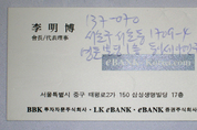 이명박 후보가 김경준 전 BBK 대표와 결별한 이후에도 BBK명함을 사용했다는 증언이 나왔다.22일 '조갑제닷컴'에 따르면 이장춘 前외무부대사는 "2001년 5월30일 그의 사무실에서 이명박씨로부터 명함을 직접 받았다"며 명함을 직접 증거물로 내놓았다. 명함에는 eBank-Korea.com, BBK투자자문회사, LK-eBank· eBANK증권주식회사라는 명칭 위에 李明博 會長/代表理事라는 직함이 분명히 적혀 있다.이 전 대사는 "2001년 5월30일 2시30분 서초구 영포빌딩에서 이명박씨를 만나 명함을 받았다"며 "이명박씨와는 20년 지기다. 명함을 줄 필요가 없었다. 당시 이명박씨는 이런 일을 한다, 인터넷 시대여서 인터넷 금융업을 한다면서 명함을 줬다"고 밝혔다.이 전 대사는 명함을 공개한 이유에 대해 "진실을 아는 사람으로서 숨기고 있을 수 없었다. 이명박 후보의 'BBK와는 아무 관련이 없다'는 거짓말을 한국의 보수·우파가 믿는 바람에 온 나라가 거짓말의 소용돌이 속으로 빠져들었다"고 토로했다. 그는 이어 "진실을 알고 있는 이들, 말해야 할 사람들조차 침묵한다. 보수언론은 진실을 모를 리가 없는데도 MB편을 드는 바람에 공범이 돼 버렸다. 대재앙이다