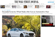 품질경쟁력에서 독일 럭셔리 세단들에 뒤지지 않는 평가를 받고 있는 현대차의 중대형 세단 제네시스가 유력 외신으로부터 또 극찬을 받은 것으로 확인됐다.월스트리트저널은 지난 13일자 기사 "현대 제네시스: 무엇이 이 차를 자동차업계의 스타로 만드는가"(Hyundai Genesis: What Makes the Car an Automotive Star)라는 제목의 기사에서 제네시스가 가진 경쟁력과 차별성에 대해 상세히 언급했다. 기자인 DAN NEIL은 제네시스 3.8 AWB(전륜구동) 모델을 BMW 335i xDrive 및 재규어 XF 3.0 4륜구동 모델과 비교했다. 그는 "제네시스 ANW 3.8은 이들과 비교해서 확실히 프리미엄 세단에 가까운 스펙을 가지고 있다"(Competing with cars like BMW 335i xDrive and Jaguar XF 3.0 with all-wheel drive, the Genesis AWD 3.8 certainly specs out like a premium car)고 말했다. 구체적으로는 △ 자연흡기 기반의 V6 엔진 △ 8단 자동변속기 △ 대형차에 버금가는 사이즈 등을 지적했다. 기사는 강력한 힘을 가진 고급세단