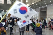 중년 여성들이 주축이 된 시위대가 'JTBC의 태블릿PC 조작보도'에 관한 심의를 거부하고 있는 방송통신심의위원회 1층 로비에서 철야농성을 벌이면서 추위와 과로, 수면부족으로 인한 부상자가 속출하고 있다. 엄마부대와 애국보수연합 등 보수시민단체 회원들은 어제(17일) 오후 3시 태블릿PC조작규명진상위원회의 기자회견 이후로 18일 오후 3시 현재까지 만 12시간 넘게 철야농성을 벌이고 있다. 현재 방심위가 있는 서울 목동 한국방송회관 건물은 영등포와 서울경찰청에서 나온 사복경찰관 30~50여명(추정)과 함께 기동대원 80명(공식 확인)이 모든 출입구를 봉쇄하고 있다. 건물 정문과 좌측 출입구, 뒤편 출입구는 물론, 지하주차장 입·출구까지 기동대원들이 보초를 서고 있다. 건물 내부도 외부인의 출입을 원천 차단하고 있다. 기동대원들은 엘리베이터 복도 입구를 앞뒤로 마치 성벽처럼 몇겹씩 에워싸고 있다. 로비에서 2층으로 연결되는 2개의 계단 입구도 각각 기동대원들이 막아선 상태다. 엄마부대와 애국시민들은 정문 안쪽 로비에서 북과 확성기를 동원, “손석희 구속하라”, “진실을 밝혀라” 등의 구호를 외치고 있다. 시민들은 자발적으로 준비해온 태극기를 흔들며 로비 안에서