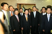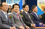 대통합을 주장하는 김근태 전 열린당 의장과 민주당 김효석 원내대표가 열린당 중심의 대통합을 반대하는 중도개혁통합신당 김한길 대표와 어색한 자리에서 조우했다. 이들은 22일 민생정치모임이 국회 귀빈식당에서 연 ‘민생정치비전정책토론회’에 축사자로 참석했다. 이외에도 정동영 전 열린당 의장과 양길승 미래창조연대 대외협력위원장이 참석했다. 이날 김한길 대표는 “일부에서 12월 대선에서 승리하려면 대통합이 필요하다고 한다. 요즘 대통합이라는 말이 왜곡되서 사용되는 것 같다”며 “열린당을 극복하기 위해서 중도개혁세력들이 한데 힘을 모아 한나라당과 붙어 보자, 이런 생각에서 통합 작업이 시작된 것 아니냐”고 말했다. 그는 “그런데 지금 와서 열린당이 통째로 함께해야 한다는 주장이 큰 소리를 내고 있다”며 “지난 2월 전당대회에서 결의한대로 발전적 해체를 한다면 중도 대통합은 실현될 것”이라고 말했다. 공교롭게도 다음 축사자는 김효석 민주당 원내대표. 장상 전 민주당 대표와 함께 민주당 내의 대통합파들을 모으고 있는 당사자다. 김 원내대표는 “모두 다 모였는데 열린당 의원들만 없는 것 같다”는 농담으로 축사를 시작했다. 하지만 이는 통합 과정에서 열린당을 배제하면 안된다는