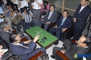 박근혜 캠프는 오전 10시부터 긴급회의에 돌입했다. 회의 분위기는 시종일관 무거운 분위기 속에서 진행되었으며, 간간히 격한 목소리도 새어나왔다. 강재섭 대표의 중재안 발표가 임박한 가운데 "원칙과 상식에 충실해야 한다"는 압박의 수위를 높여왔음에도 불구하고 20:30:30:20 기본원칙이 훼손된 것에 대한 우려와 분노가 봇물터지듯 표출되었다. 결국, 강재섭 대표의 회견에도 불구하고 "어제까지의 입장에서 조금도 변한 것이 없다"는 쪽으로 결론이 모아졌고, 오후에 '수용 거부'로 압축되는 한선교 대변인 명의 논평이 나왔다. 그 시간 대전을 방문 중이던 박근혜 전 대표는 "수용할 것이냐"는 기자들의 질문에 대해 "여러분 같으면 이와같은 제안을 수용할 수 있겠어요?"하며 부정적 견해를 밝힌 것으로 전해졌다. 박근혜, 姜-李와 대립각 세우며 '마이웨이' 그렇다면 박근혜 캠프는 왜 '수용 거부' 쪽으로 뜻을 모은 것일까? 이는 한번 끝을 보겠다고 마음을 먹으면 이를 반드시 관철시키고야 만다는 박근혜의 파이터 기질이 이미 작동되고 있다고 볼 수 있다. 지난 4일 강재섭-이명박-박근혜 회동 당시에 '경선 룰' 문제를 집중 거론할 때부터 이미 박 캠프의 '강경기조'는 확인된