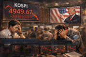 인싸잇=강인준 기자 | 코스피 지수가 폭락해 5000포인트가 붕괴됐다. 대장주인 삼성전자와 SK하이닉스도 각각 전 거래일 대비 6%와 8% 하락률을 보였고, 한국거래소는 장중 한때 코스피에 대한 매도사이드카(프로그램매매 매도호가 효력정지)를 발동했다. 이번 증시 패닉은 미국 발(發) 차기 연방준비제도이사회(Fed·연준) 의장 지명이 배경에 있는 것으로 보인다. 2일 유가증권시장에 따르면, 이날 코스피 지수는 전 거래일보다 5.26% 하락한 4949.67포인트에 거래를 마감했다. 지난달 22일 코스피가 사상 처음으로 5000선을 돌파한 지 불과 4거래일 만에 무너진 것이다. 이날 외국인과 기관은 각각 2조 5000억 원과 2조 2000억 원 이상 순매도했지만, 개인은 4조 5000억 원 이상 순매수를 기록했다. 특히 이날 코스피가 5% 넘게 폭락하면서, 한국거래소는 오후 12시 31분경 유가증권시장에 매도사이드카를 발동했다고 공시했다. 매도사이드카는 코스피200 선물이 직전 거래일 대비 5% 하락한 상태가 1분간 지속되면, 프로그램매매 매도호가 효력을 5분간 정지하는 제도다. 코스피에 매도사이드카가 발동한 것은 지난해 11월 5일 이후 3개월 만이다. 이날 삼
