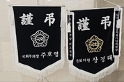 16일 서울 서대문구 연세대학교 신촌 세브란스병원 장례식장 황의원 전 미디어워치 대표의 빈소에 장경태 더불어민주당 의원의 근조기가 놓여있다. 고인의 빈소는 연세대 신촌세브란스병원 장례식장 15호실이며, 발인은 20일(목)이다.