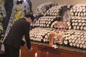 오영국 태블릿진상규명위원회 대표가 서울 서대문구 연세대학교 신촌 세브란스병원 장례식장에 마련된 고(故) 황의원 전 미디어워치 대표의 빈소를 찾아 조문하고 있다. 황 전 대표의 장례식은 16일부터 20일까지 서울 신촌세브란스병원 장례식장 15호실에서 진행된다. (신한은행 110-317-691073 홍찬기(황의원 전 대표의 사촌동생) (장례식비를 제외한 금액은 모두 황의원의 태블릿 진실투쟁 기금으로 쓰입니다.)