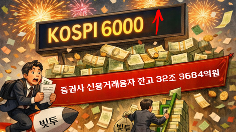 인싸잇=유승진 기자 | 코스피 지수가 6000을 돌파하는 등 국내 증시가 강세를 이어가면서 ‘빚내서 투자(빚투)’의 규모도 사상 최고치를 기록하고 있다. 28일 금융투자협회에 따르면, 증권사의 신용거래융자 잔고는 지난 26일 기준 32조 3684억원으로 집계됐다. 신용거래융자 잔고는 투자자가 주식 매수를 위해 증권사에서 빌린 뒤 아직 갚지 않은 금액을 말하며, ‘빚투’의 지표로도 불린다. 지난달 29일 처음 30조 원을 넘어선 뒤 1개월도 채 되지 않아 2조 원 넘게 늘어난 것이다. 지난해 말 27조 2864억 원과 비교하면 올해 들어 약 20% 불어난 수준이다. 시장별로 보면 빚투 증가세가 유가증권시장(코스피)에서 가장 두드러졌다. 코스피 신용거래잔고는 지난해 말 17조 1260억 원에서 21조 4867억 원으로 약 25% 늘었다. 코스닥 시장은 같은 기간 10조 1603억 원에서 10조 8716억 원으로 약 7% 오르는 데 그쳤다. 신용거래융자는 통상 주가 상승을 기대하는 투자자가 많을수록 늘어난다. 이러한 급증은 코스피가 사상 처음 6000선을 돌파하는 등 연일 최고치를 경신한 영향으로 풀이된다. 코스피는 지난해 말 대비 약 50% 급등했다. 신용융자는