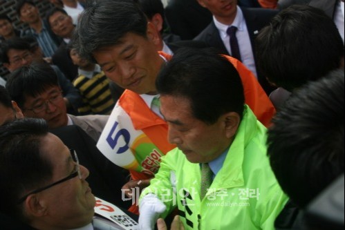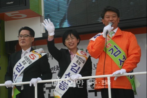 야권연대 민노당 김선동 후보와 무소속 조순용 후보가 박지원 대표의 박심(朴心)을 놓고 러브콜을 벌였지만 박지원 원내대표는 김선동 후보를 선택했다.