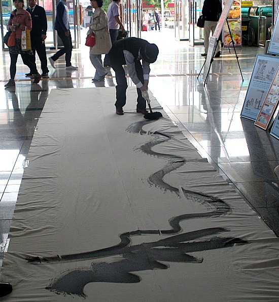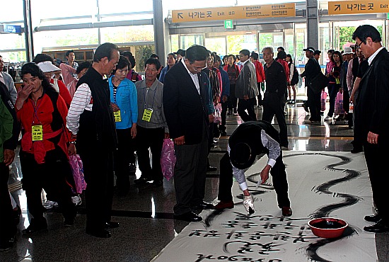 이곳에서 세계적인 용그리기 서화가 최봉일옹이 용그리기 퍼포먼스를 선보이고 있다. 최 옹은 이 퍼포먼스에서 북한주민의 인권을 유린하는 김정일 정권을 신랄하게 비판하는 글귀를 적었고 순천역을 방문한 수백명의 관람객이 이 장면을 지켜봤다.
