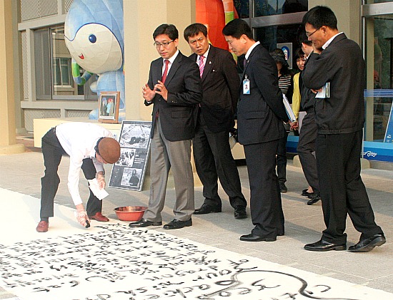 이곳에서 세계적인 용그리기 서화가 대한서화협회 최봉일 회장이 '용그리기' 퍼포먼스를 선보였다. 최 회장은 이 퍼포먼스에서 북한주민의 인권을 유린하는 김정일 정권을 신랄하게 비판하는 글귀를 적었고 여수시청을 방문한 시민들과 김충석 여수시장을 비롯해 시청직원들이 이 장면을 지켜봤다.