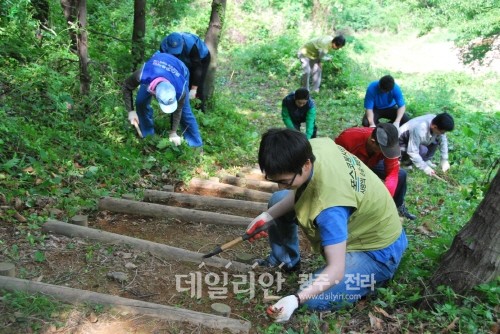 낫과 호미, 갈쿠리 등을 든 봉사자들은 등산로 길 양 옆으로 나있는 풀과 잡목을 제거하고 칡넝쿨과 쓰레기를 치웠다.