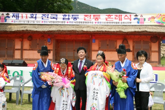 순천보훈지청(지청장 강춘석)은 지난 5월 21일(토) 12시, 순천 낙안읍성에서 그동안 혼례식을 올리지 못한 채 살고 있는 국가유공자(전상군경) 김용태(66세) 부부, 공상군경 정광주(63세) 부부 등 재가복지대상자 2가구의 전통합동혼례식을 올렸다.