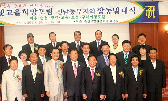 이날 행사에선 이성헌 국회의원과 강창희 최고위원을 비롯, 김덕배 국민희망포럼 사무부총장, 빛고을 희망포럼 대표, 김여태 광양대표,황선호 순천대표, 장귀석 고흥대표, 유영남 여수대표,이기환 보성대표,전영탁 여수대표,박홍철 구례대표, 경제협력위원장 서종환, 임근옥 중부지역위원장,김연식 서부지역지원장 등이 참석했다.