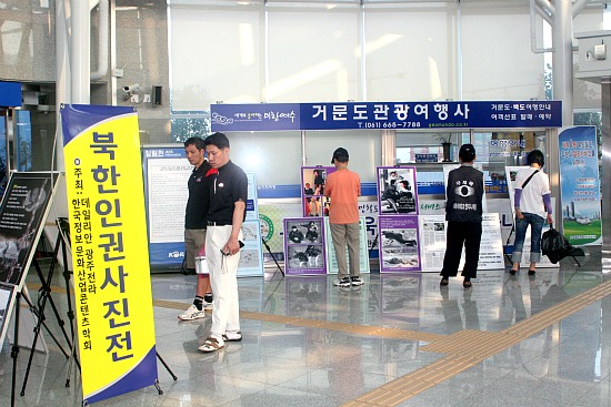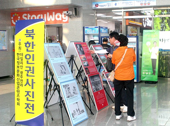 북한인권법 제정을 촉구하는 북한인권사진전이 8일 여수역에서 개최됐다. <데일리안광주전라>인터넷 신문사와 <한국정보문화산업컨텐츠학회>가 공동주최한 이번 사진전은 순천시, 광양시, 여수시 3개시 순회전시로 진행되고 있으며, 최근 순천대학교 전시회에 이어 여수역은 6월 14일까지 전시될 예정이다.